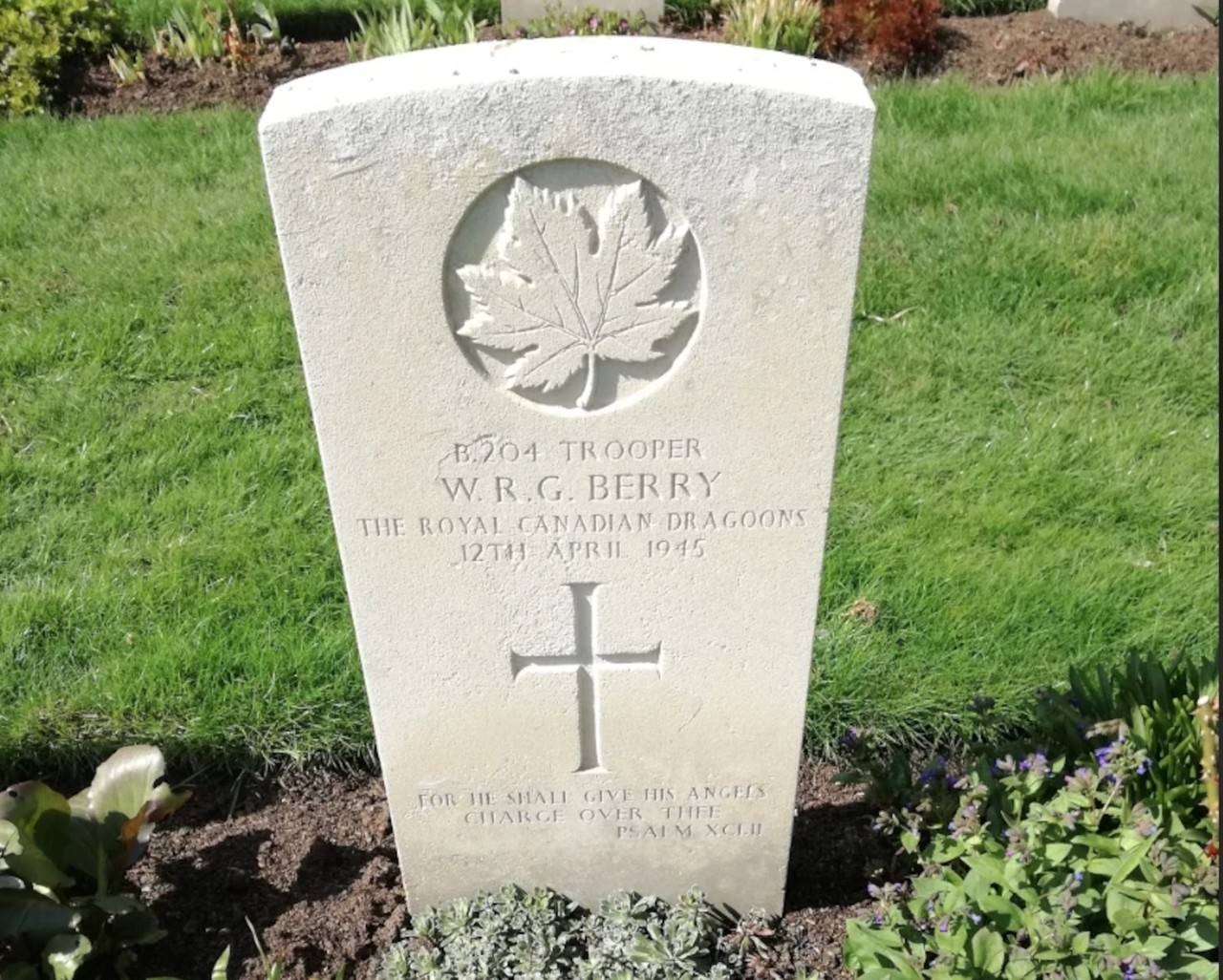 In one of those armoured cars, a Staghound, was 24-year-old Trooper Wilfred Robert George Berry from Ontario. The young Canadian had volunteered for military service in Europe. And had already fought with the Royal Canadian Dragoons in Italy. At the end of February 1945, they were transferred to Northwest Europe.