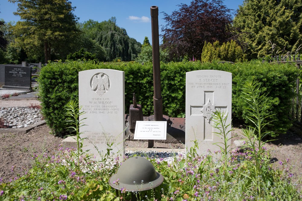 Later that same Easter afternoon, the severely wounded British soldier Sydney Stacy of the Worcestershire Regiment is found. He too succumbs to his injuries and is laid to rest at the General Cemetery in Diepenheim.