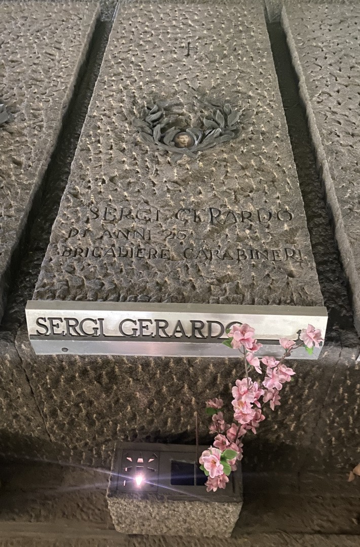 Upon their return, the Germans disarmed the battalion and imprisoned them in a camp. Gerardo escaped and fled to Rome, where he joined the local underground Carabinieri organization, which had the nickname Bande Caruso because it was under the leadership of Filippe Caruso. He fought on the front lines of the resistance and instilled his love of his country as well as courage in his fellow fighters. Betrayed by a spy, he was arrested on 14 February 1944, and imprisoned by the SS in the Via Tasso prison, where he endured brutal torture. As a reprisal for the Via Rasella attack, where the partisans assassinated 33 Nazis, he was selected as one of the 335 civilians to be executed at the Ardeatine Caves. He was killed on 24 March 1944, just a day before his 27th birthday.