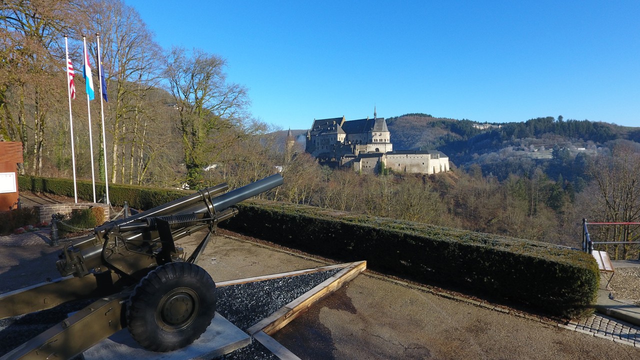 À lafin de la bataille des Ardennes, vers le 28 janvier 1945, et alors que les Ardennes luxembourgeoises avaient été libérées et nettoyées des troupes allemandes par les unités de la troisième armée du général Patton, Vianden resta exceptionnellement aux mains des Allemands pendant encore deux semaines. Les forces allemandes conservent un étroit point d'appui et un couloir à Vianden pour permettre aux traînards allemands de se faufiler à travers les positions américaines afin de gagner la ligne de défense "Westwall" dans les zones frontalières. C'est au 1255e bataillon du génie qu'il revient de dégager et de libérer Vianden le 12 février 1945, alors que la "campagne de Rhénanie" a déjà commencé le 8 février 1945. Vianden devient ainsi la dernière ville de la Bataille des Ardennes à être libérée.